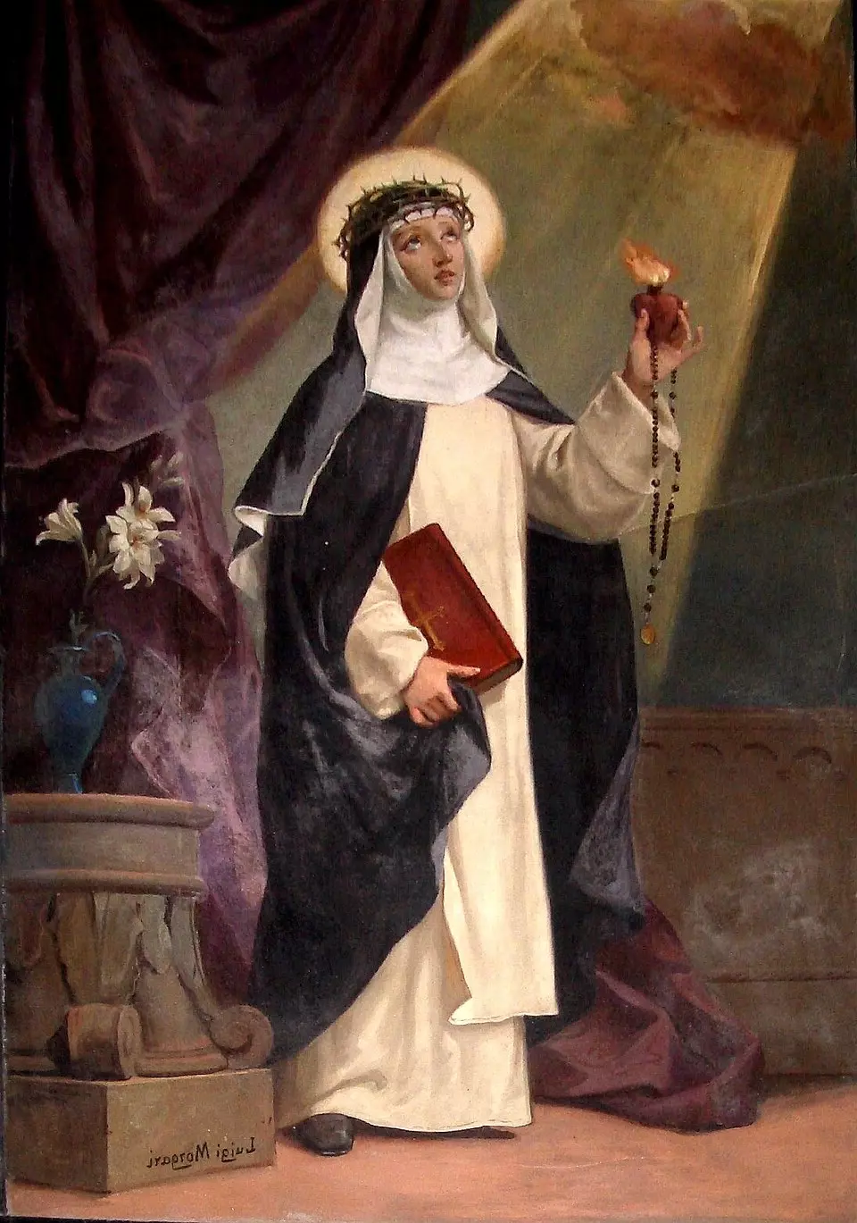 Madeleine, née à Trino, au diocèse de Verceil, de l’honorable famille de Panatieri, vers le milieu du XVesiècle, apparut douée de la beauté du corps et des charmes de l’esprit. Prévenue par les dons célestes, elle se détourna de tout ce qui risquait de souiller la sainteté et l’innocence de sa vie : en effet, elle se garda du luxe, de la société des mondains, des excès de la langue et de la liberté des regards. Aussi, rien d’étonnant à ce que, toute petite encore, elle ait voué à Dieu sa virginité. Admise bientôt parmi les sœurs de la Pénitence de Saint Dominique, sur sa demande instante, suivant l’exemple austère de la séraphique Catherine de Sienne, elle s’appliqua par ses jeûnes, ses veil1es, ses continuelles prières, ses flagellations, sa patience, son humilité et sa mansuétude, à se rendre digne des épousailles divines. Très modérée dans la nourriture et le sommeil, elle était si absorbée par la prière et la méditation des choses célestes, que parfois elle veillait des nuits entières dans cette contemplation. D’une piété fervente et affectueuse pour la Passion du Christ, elle mérita de participer aux douleurs de son Époux. Elle avait un très grand culte pour le très saint Nom de Jésus, et s’approchait tous les jours de la sainte table.