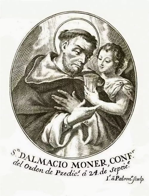 Oraison : « Dieu, qui avez orné de prodiges et de vertus votre humble serviteur Dalmace et qui l’avez merveilleusement embrasé de votre amour, en lui donnant le mépris de toutes les choses de la terre, faites que, dégagés par son intercession de toutes les attaches humaines, délivrés de toute adversité, nous désirions uniquement les choses du ciel ».