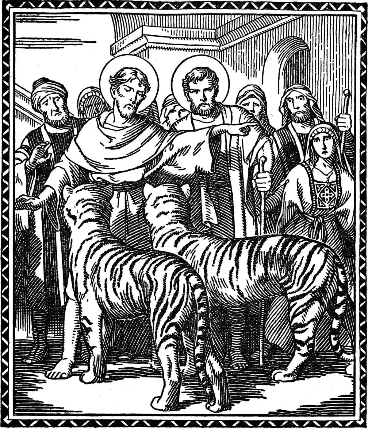 Simon et Jude ont évangélisé l’Égypte et la Mésopotamie. Ce qu’ils ont fait nous l’ignorons. Ils ont parlé de Jésus, ils sont morts pour lui, le reste importe peu. Leur mission était de le faire connaître, ils l’ont remplie. Leurs restes vénérables reposent aujourd’hui dans la basilique de Saint-Pierre, à Rome. Et c’est toujours très doux de s’agenouiller devant ceux qui ont vécu familièrement avec Jésus. Morts, ils en parlent encore, et les entendre, dans la paix de l’âme, attire invinciblement à lui.